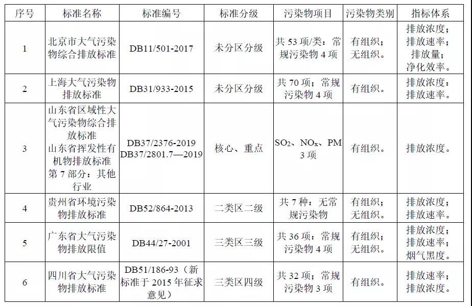 北京市和上海市大气污染物综合排放标准分别于2017年和2015年发布,在国内其他省市已发布的综合排放标准中相对较新且限值也相对较严。