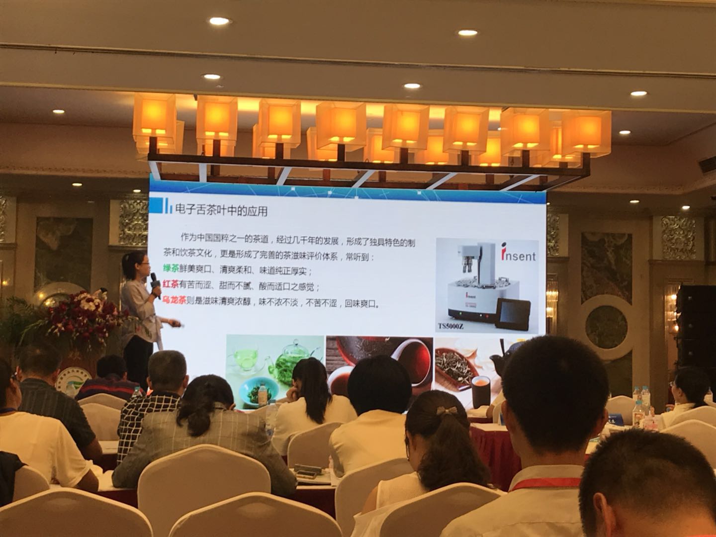 北京盈盛恒泰的技术工程师就电子舌(日本INSENT)在茶滋味中的应用与参会的专家学者做了交流。报告中,技术工程师首先对日本INSENT电子舌的核心技术特点做了详细说明,其次就该电子舌技术在泡茶条件对茶滋味的影响、不同发酵程度茶滋味的比较、加工过程中茶滋味的变化、茶产品的质量控制和市场宣传等方面的应用案例做了详细的介绍。