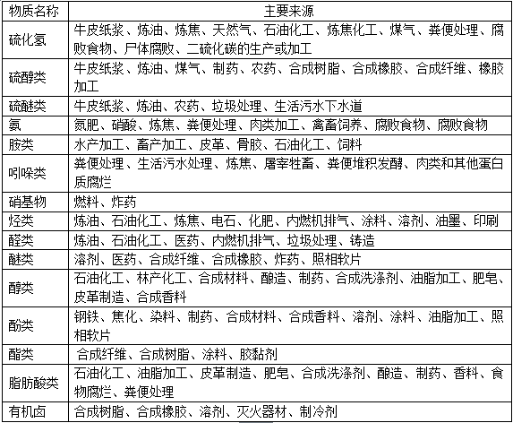 表2-1恶臭物质的主要来源