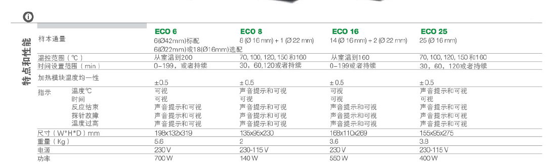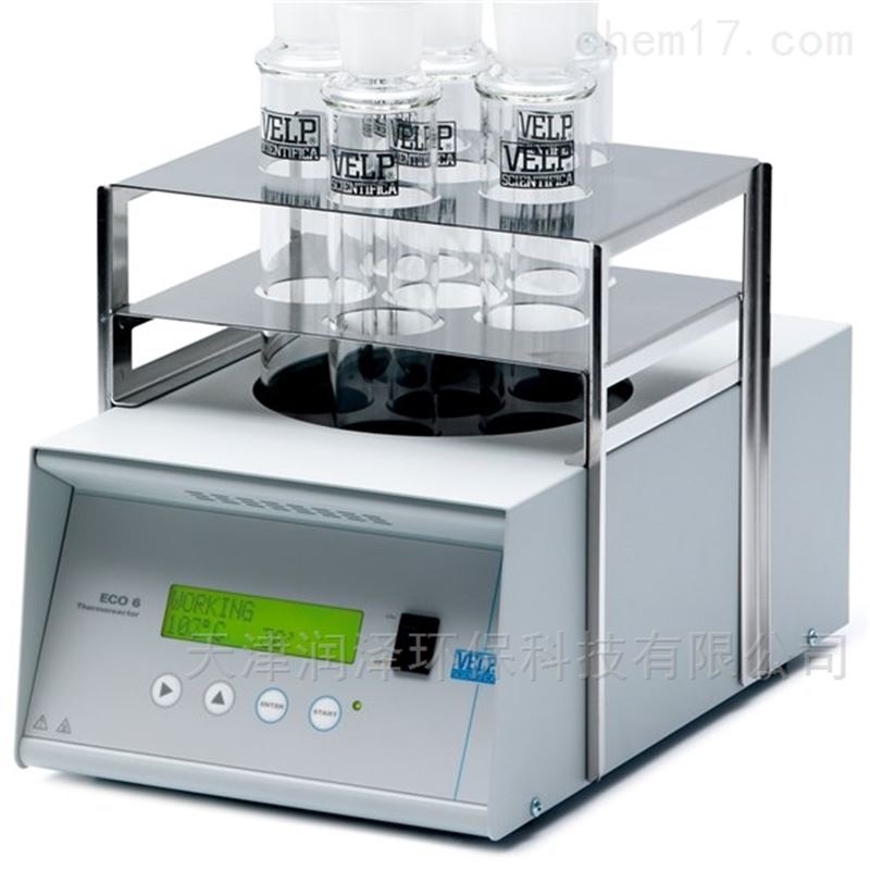 化学需氧量测定COD, VELP ECO热反应器可用于COD分析,也可以用于样本制备,比如用于测定矿物质,合金,动物饲料,土壤,沉淀物和有机组织中的金属和非金属元素含量分析。COD分析通常是在150°C反应两个小时,而VELP ECO系列可以在30分钟完成,因为该系列热反应器可以提供更高的反应温度160°C。铝制的加热模块可以提供好的加热环境和温度均一性。ECO系列热反应器也可以用来测定TOC含量,铬,氮和锍等元素含量。