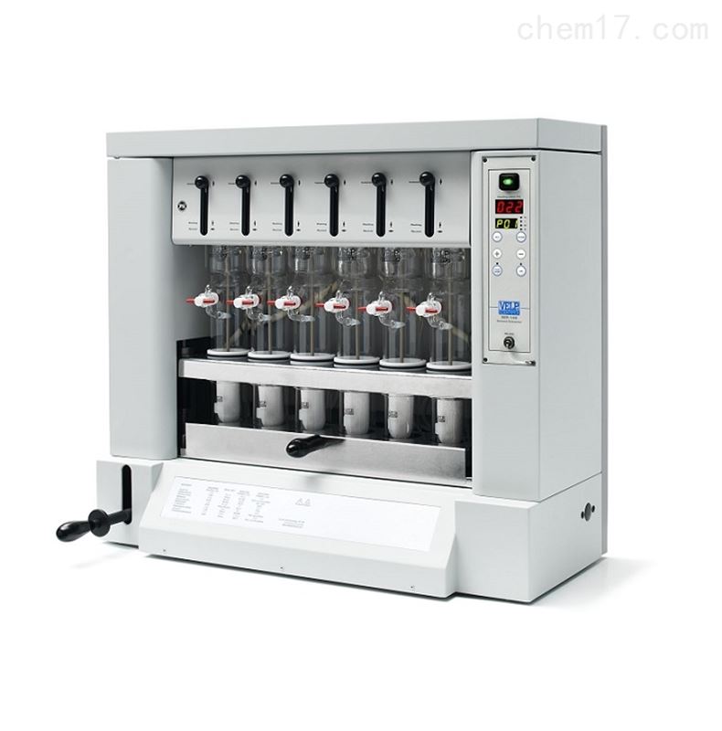 每批可处理6个样,整个消解萃取过程分为三个步骤,并且采用了溶剂终回收技术,从而缩短了浸提时间。*步骤中样品直接浸入溶剂内浸提,在第二步骤中样品从溶剂中移出,回流淋洗。通过第三个步骤通过蒸馏,有机溶剂回收。
