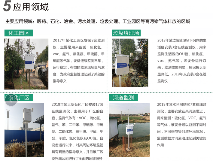 MG系列多组分恶臭检测仪正是基于此研发设计的一款用于检测工业有毒有害气体的仪器,检测气体种类选择范围包括硫化氢、氨气、甲硫醚、甲硫醇、二甲二硫、二硫化碳、苯乙烯、三jia胺、氮氧化物、臭氧、二氧化硫、氯化氢、氯气、TVOC等工业气体,可以基于这些污染气体浓度分析出臭气浓度OU值。用户也可根据实际应用需求定制气体种类、数量及检测范围等。相比较传统的化学法气体检测系统, MG系列多组分气体监测仪具有检测速度快、检测灵敏度高、检测参数多并种类选择灵活、操作简便、系统维护量少等特点,逐步成为环境检测站、工业园区、大型化工制药企业等应对环境空气污染监测的必要的气体检测设备。